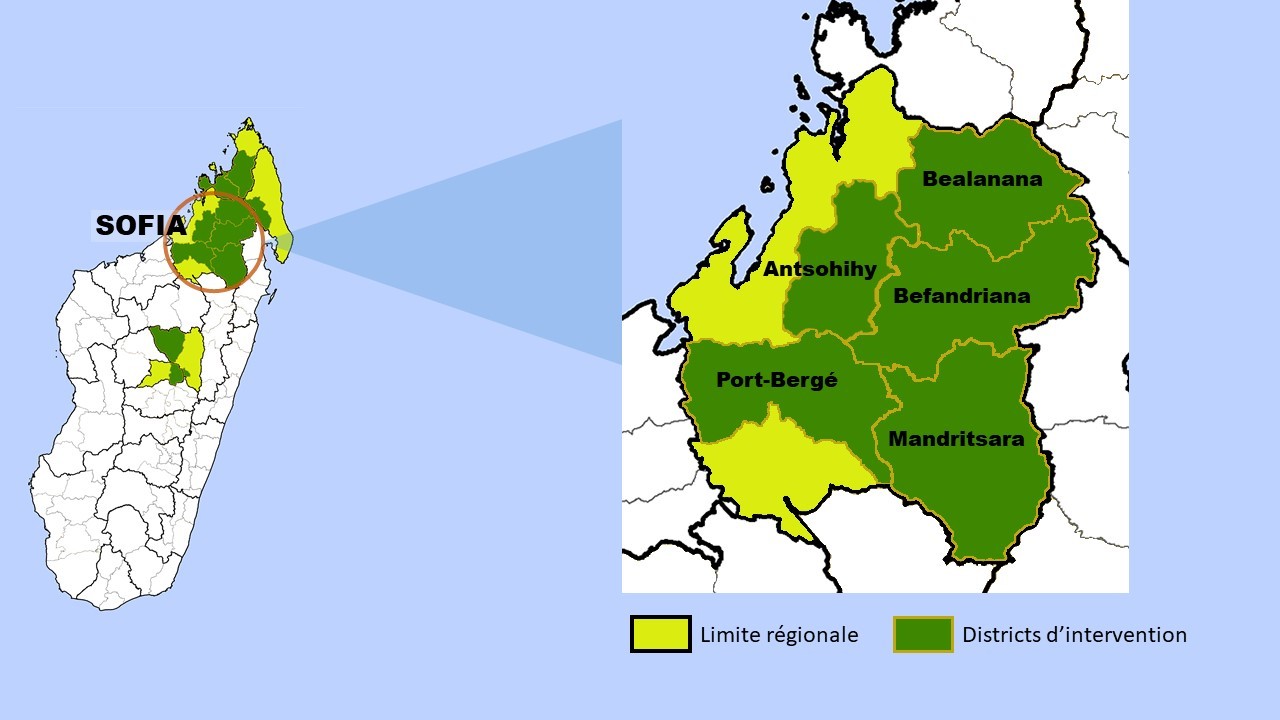 La Région Sofia comporte 7 districts, dont 5 touchés par l’intervention de l’OSDRM (Antsohihy, Port-Bergé, Bealanana, Befandriana et Mandritsara). Depuis 2010, outre un appui conséquent à la riziculture, l’OSDRM a créé dans la Région Sofia les premiers Groupes d’Epargne Communautaire (GEC), qui sont des formes d’associations villageoises d’épargne et de crédit permettant l’inclusion et l’éducation financières des populations rurales enclavées qui peuvent difficilement accéder aux établissements financiers/bancaires classiques.